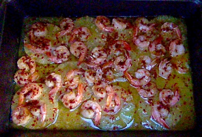 As for the brown sugar, I had sprinkled that over the shrimp like I had the crushed red pepper, but I think next time I will save a little of the pineapple juice and mix with that so I can brush it on a little more thoroughly and evenly. Some shrimp were sweeter than others this go round.